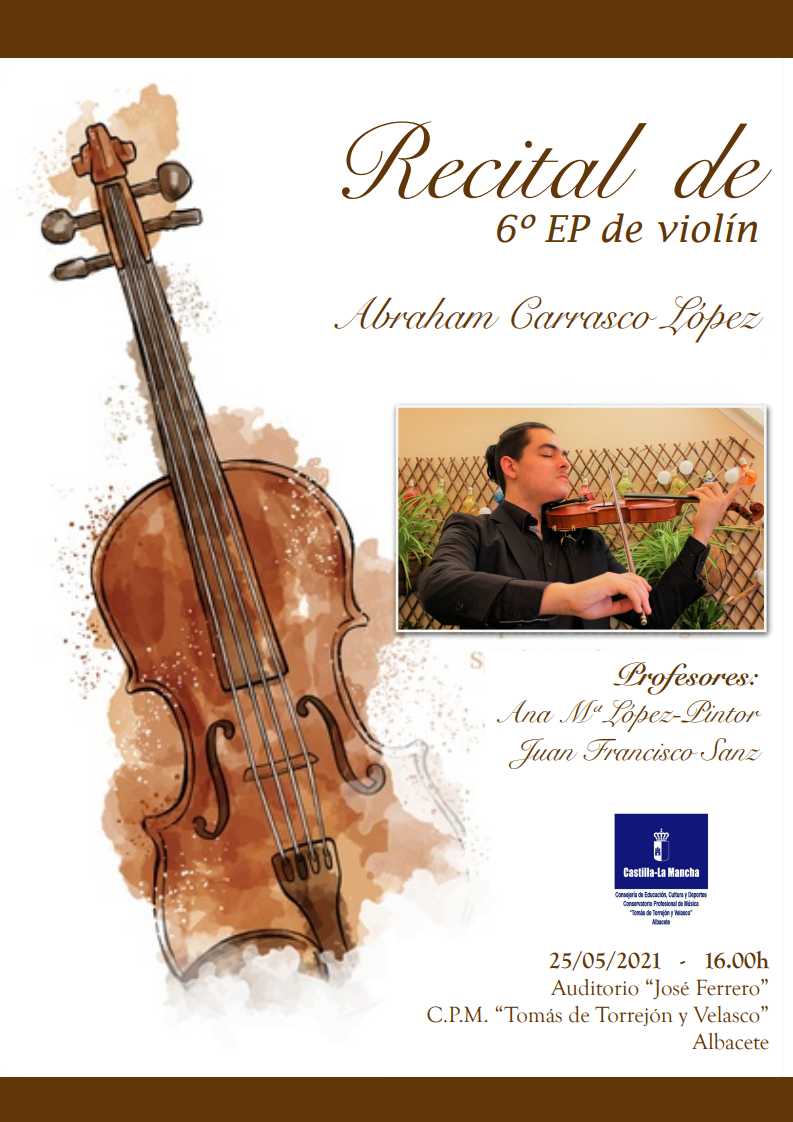 DetailsEste martes 25 de mayo, a las 16.00h, tendrá lugar un recital de violín y piano a cargo de Abraham López Carrasco, alumno de 6º de Enseñanzas Profesionales de Ana…