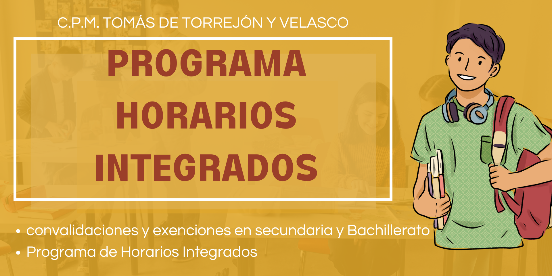 El Programa de Horarios Integrados permite compatibilizar los estudios de la ESO / Bachillerato y el conservatorio de una forma más equilibrada, integrando parte de las asignaturas del conservatorio en el horario lectivo del instituto y reduciendo significativamente la carga de tardes. Nuestro alumnado libera aproximadamente cuatro horas semanales en cada curso de la ESO y Bachillerato. Estas horas se aprovechan para impartir materias del conservatorio dentro del horario escolar del instituto, lo que se traduce en una importante reducción de la carga lectiva por las tardes, quedando, en la mayoría de los casos, únicamente la clase de orquesta o banda.
